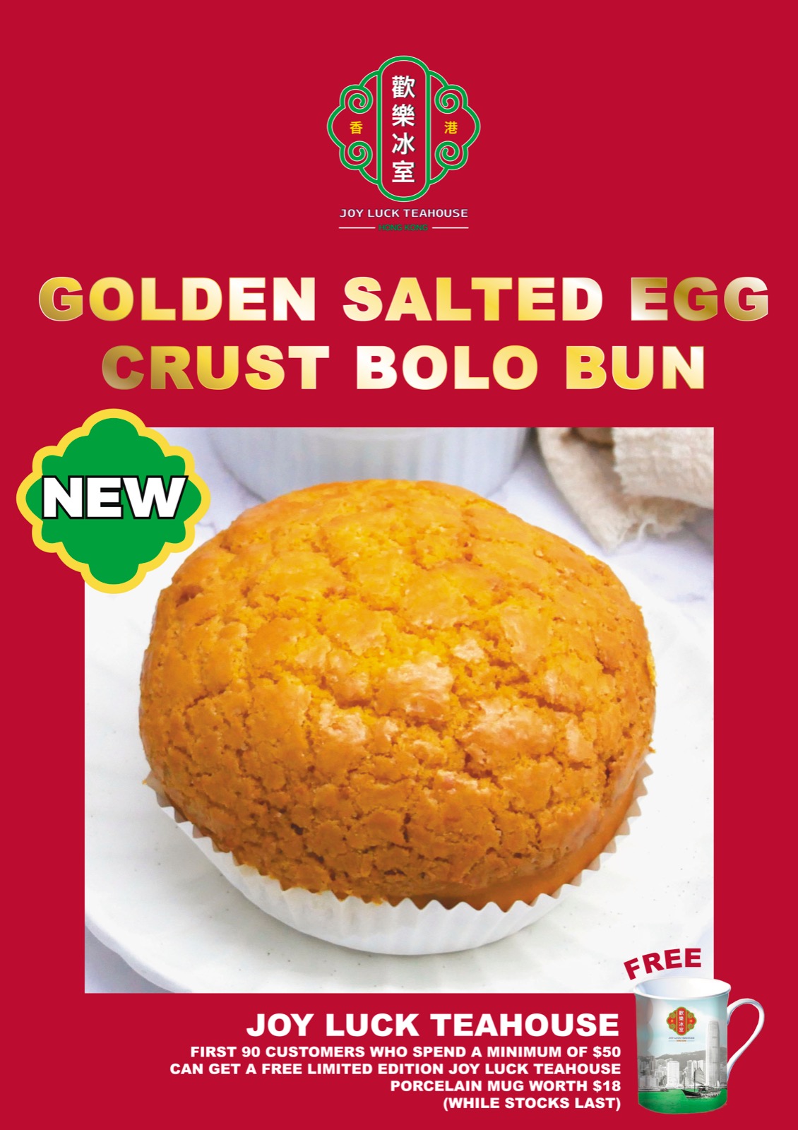 - First 90 customers who spend a minimum spend of S$50 will get a limited edition Joy Luck Teahouse porcelain mug (worth S$18)