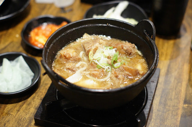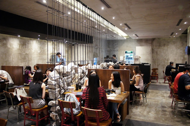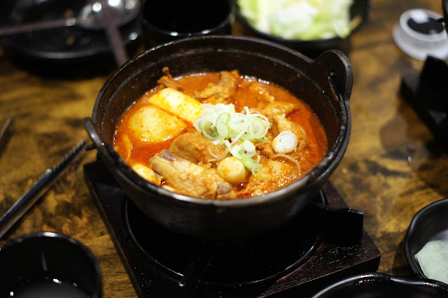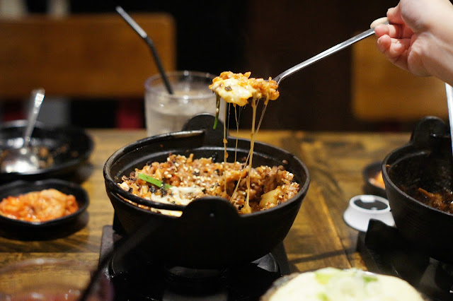 The spacious interior allows patrons to dine in comfort and ease, with wooden furniture and an industrial-themed interior with textured grey walls and dividers of stone encased in wire mesh. Plenty of warm lighting and Korean MVs were also played in the restaurant to mimic the environment of a trendy casual eatery in Seoul.
