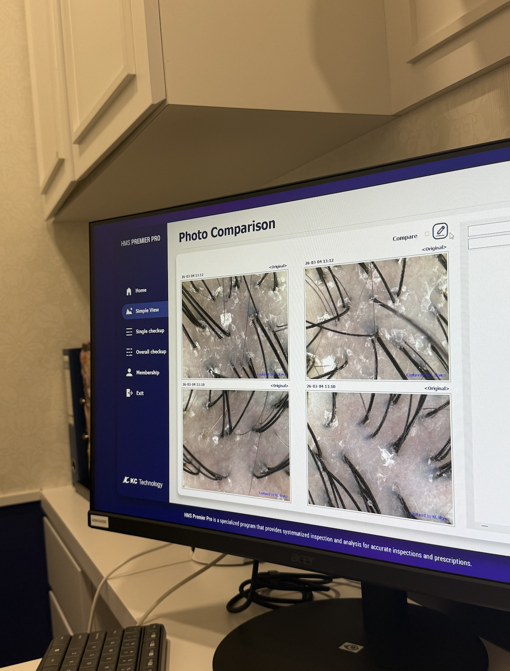 My experience started with a pre-treatment scalp and hair analysis to diagnose the root causes (pun not intended) of my hair issues.