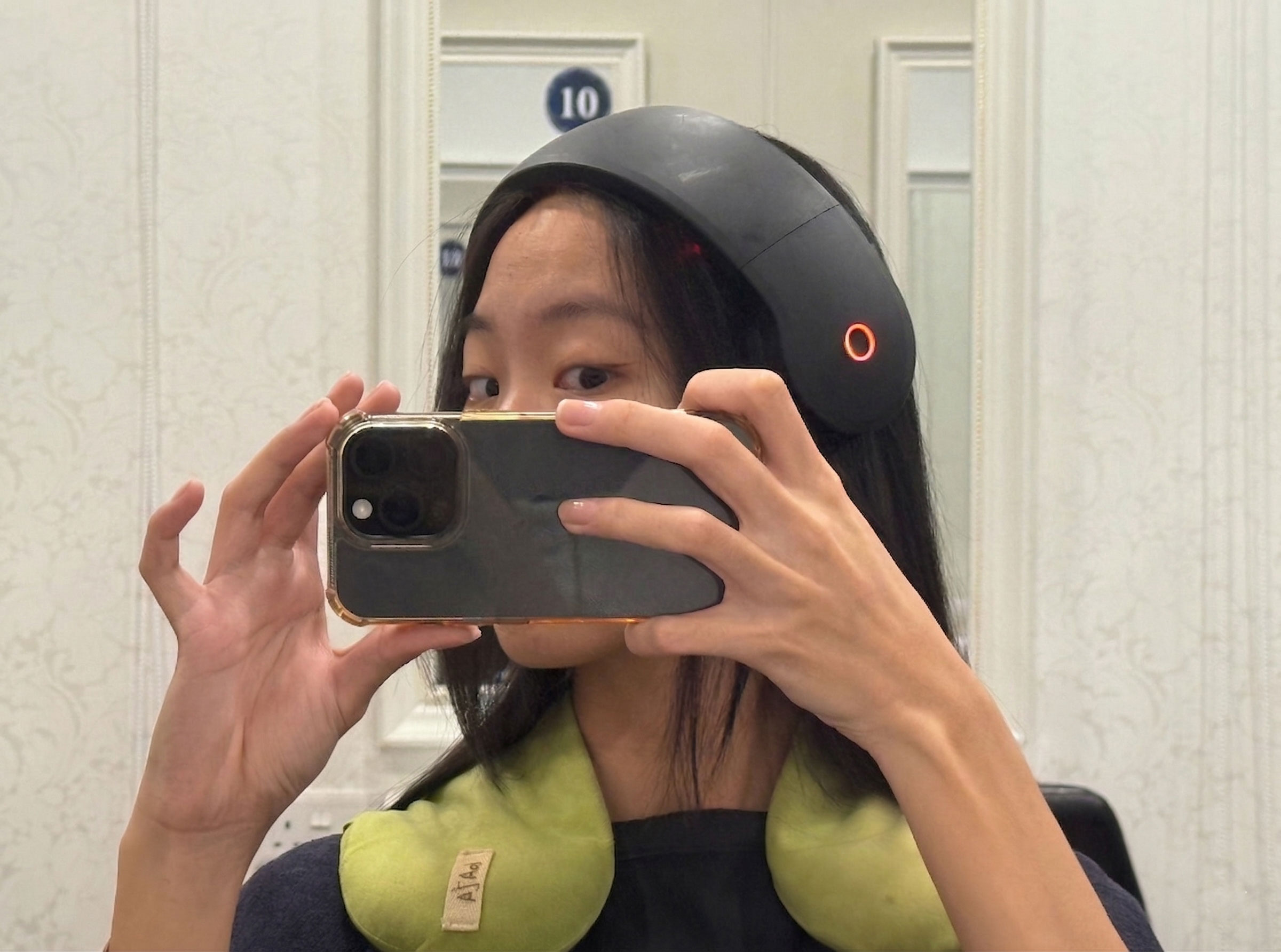 Now, it’s time for Light Therapy using the trendy looking headphones-esque gadget you see here: