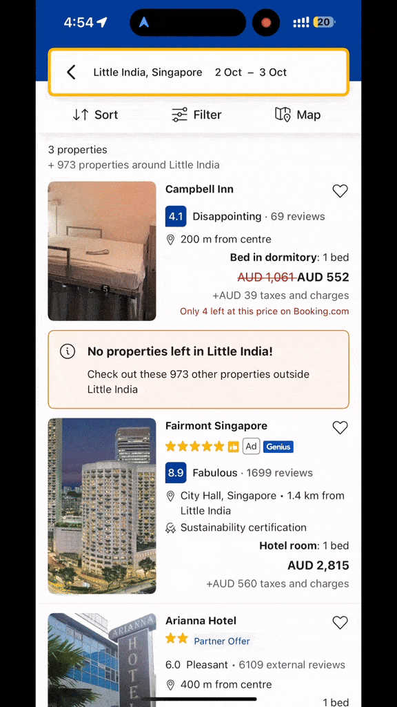 Screenshots from Brew’s booking app showed that hotel prices around Little India on 2 Oct to 3 Oct were about S$466 for a dormitory bed and over S$1,000 for other hotels.